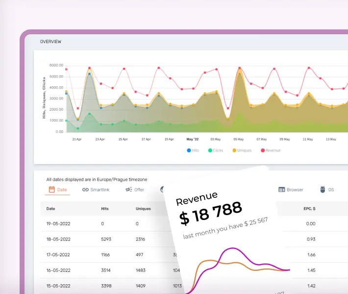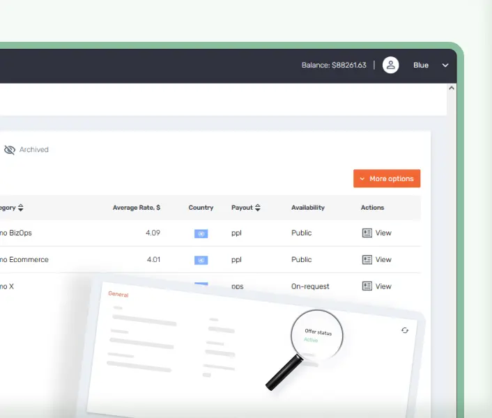 Stop the ongoing fight against fraudsters and dishonest advertisers. Now you can easily filter out bot traffic, motivated sources, and chargebacks due to our next-generation Fraud Monitoring and Prevention tools. Improve your EPM and EPC by learning which partnerships are fully transparent and which need to be discarded. Protect your data assets by collaborating only with reliable advertisers who attract the best offers and deals to your business.